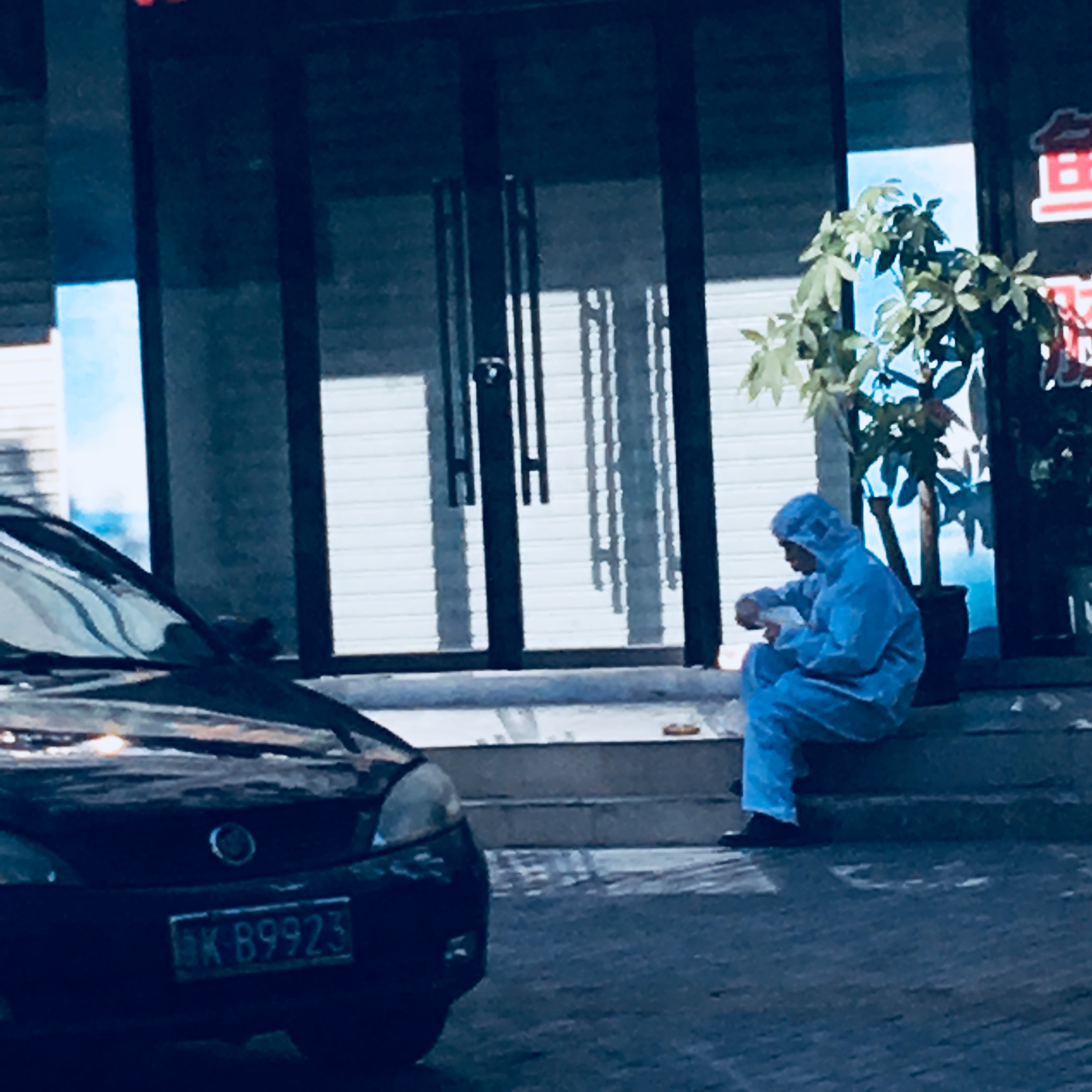 在這場(chǎng)疫情中,消毒人員經(jīng)常找不到地方吃飯。因?yàn)椴蛷d都停業(yè)了,好不容易找到一家還不能堂食。只能在路邊吃了起來(lái)。