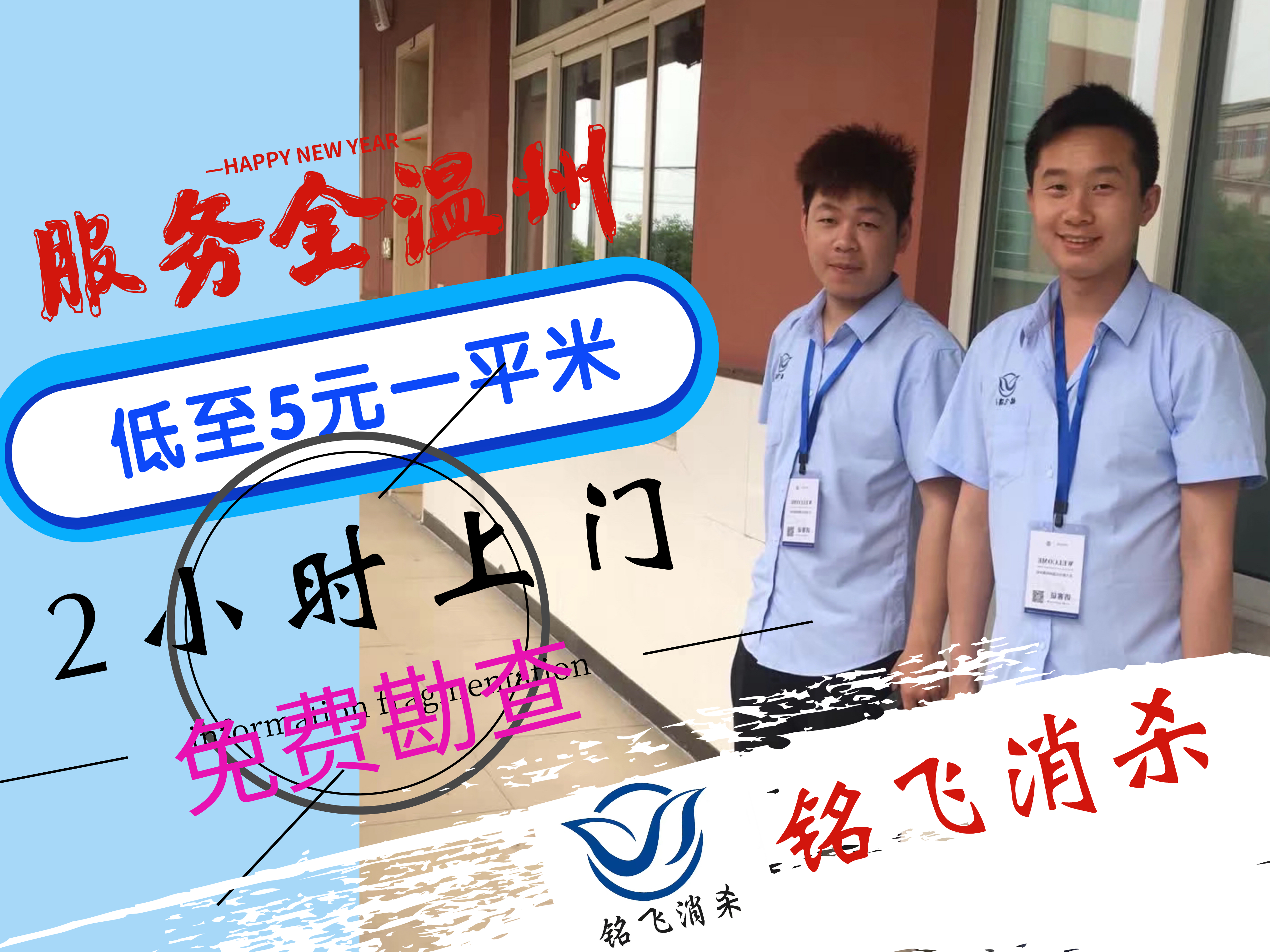 溫州銘飛經(jīng)公司登記、市衛(wèi)生局備案成立,注冊資金50萬,為溫州市公共環(huán)境有害生物控制提供專業(yè)防治服務,綜合實力前列。公司引進可持續(xù)的病媒生物控制技術,攻克了傳統(tǒng)消殺業(yè)只殺不妨,重復殺滅而不絕的弊端。溫州銘飛采用防、治結合,實時監(jiān)測。有效將蟲害風險控制到最低。多年來致力公共環(huán)境害蟲控制、白蟻防治、公共消毒、無塵保潔、香薰系統(tǒng)安裝及先進病媒生物產(chǎn)品銷售,公司以完美的服務贏得了客戶的一致認可。